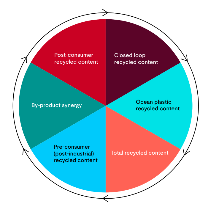 Recycled material,消費後再生塑膠,簡單來說這些塑膠的回收來源一定要是消費者使用過的,如:一般市面上常見的光碟片、水瓶、寶特瓶、電子產品零組件、家電外殼等等。若這些回收來源未經消費者使用過,例如:工廠下腳料(工廠注塑產品時產生的不良品),則無法稱作PCR塑膠。